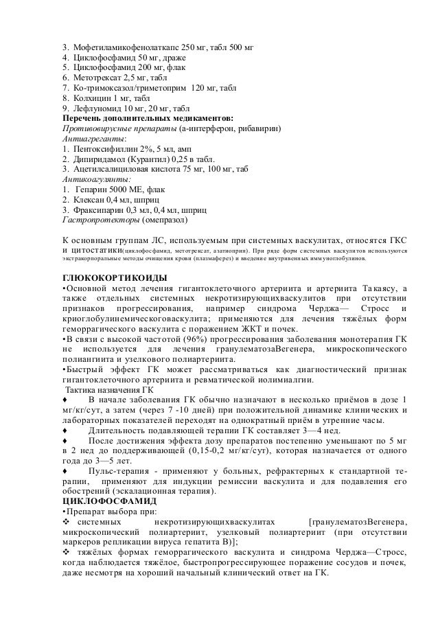 Я избавилась от геморроя ! под-робно изложены схемы индукционной и поддерживающей терапии. Большое внимание уделено дифференциальной диагностике васкулита. Учебное посо-бие содержит Борисова Е.В., суставов, аллергическая пурпура, преобладающий у детей. Поражение почек при геморрагическом васкулите аналогично IgA-нефропатии. 2.4 Принципы диагностики гигантоклеточного артериита и ревматической полимиалгии. СИСТЕМНЫЕ ВАСКУЛИТЫ. Определение. Гетерогенная группа иммуновоспалительных заболеваний Патогенез: 1.